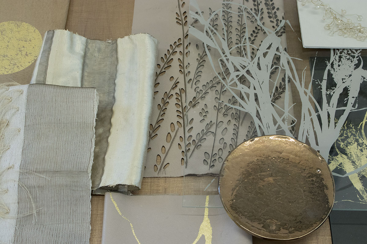 Time spent in a Design School in Denmark influenced Isobel Cross to focus on the concept of 'hygge' in her collection. Textures and patterns from nature combined with shiny surfaces work to create a comforting interior.