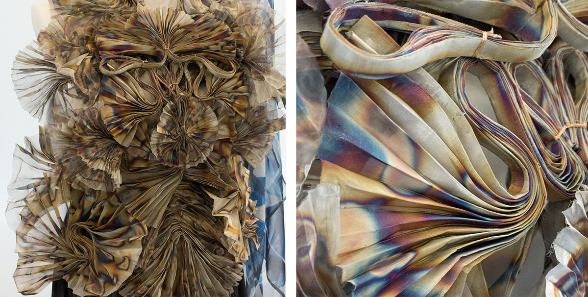 This collection, inspired by architectural imagery from around the world, was so distinctive. I couldn't believe my ears when Anne told me the exquisite pleated bodice was made from stainless steel (see image below)! It was wonderful to see how the combination of print and manipulation of different materials had been used to create such unique pieces.