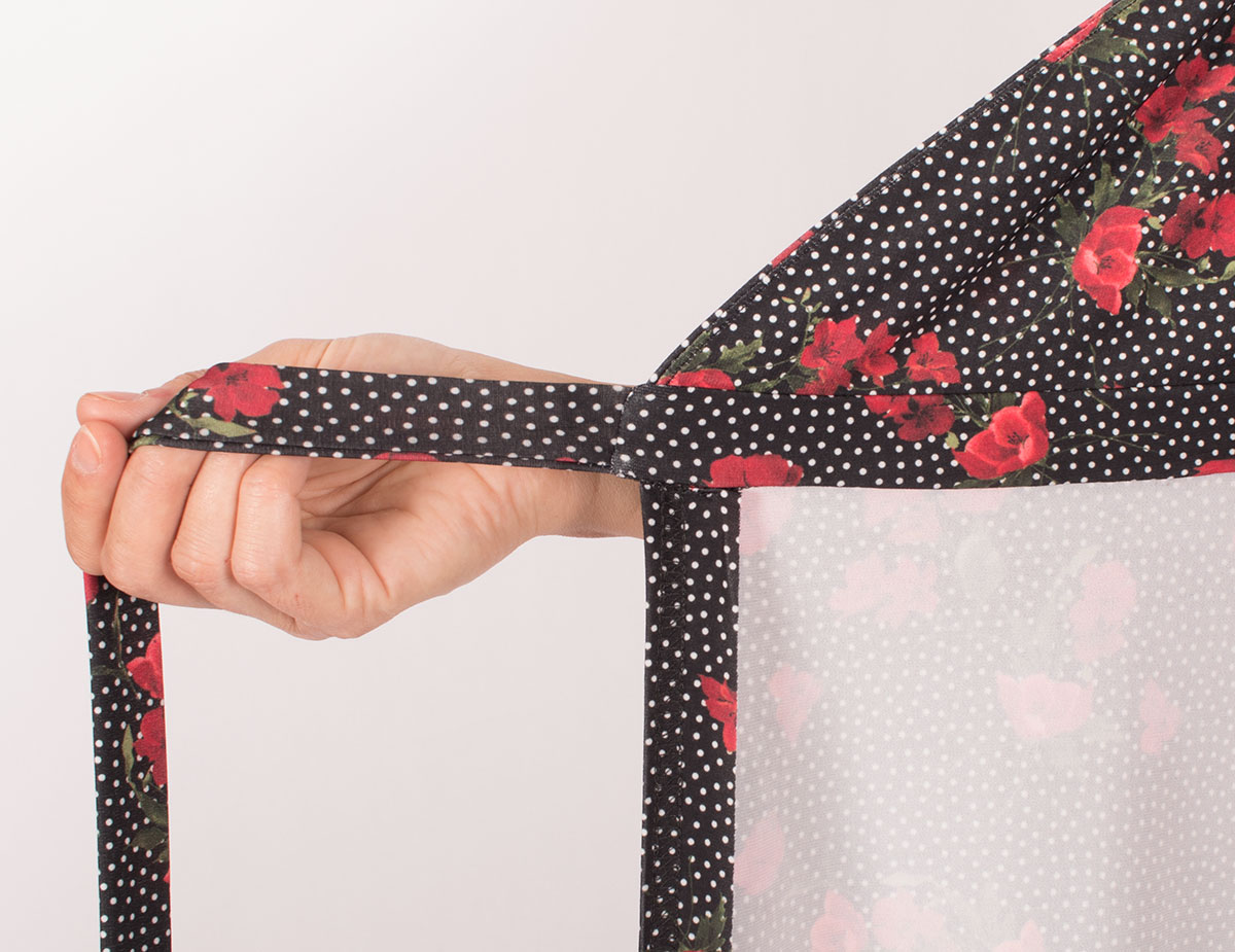 I love the classic black and white polka dots with the pretty red flowers and we also have it in a yellow colourway here.