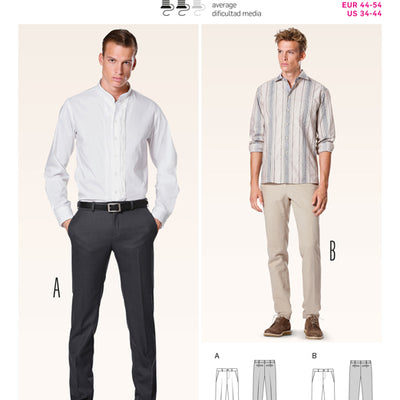 Discover our collection of men’s trousers sewing patterns, perfect for creating versatile handmade styles for everyday wear, smarter occasions and practical use. Whether you are after relaxed pull-on designs, classic chinos, utility trousers or more tailored looks, you will find plenty of inspiration here. Sewing your own trousers is a great way to achieve the right fit while choosing fabrics and details that suit your style. You can also browse our full range of sewing patterns for even more inspiration.