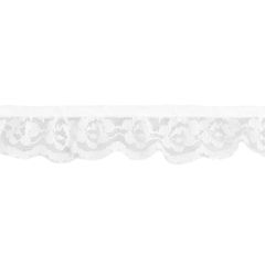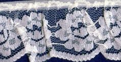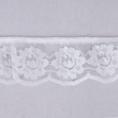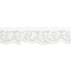 Frilled Nylon Lace with a flower motif. Already gathered on to tape it makes insertion easy.