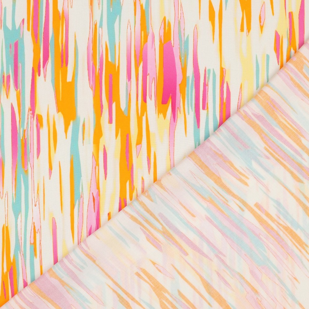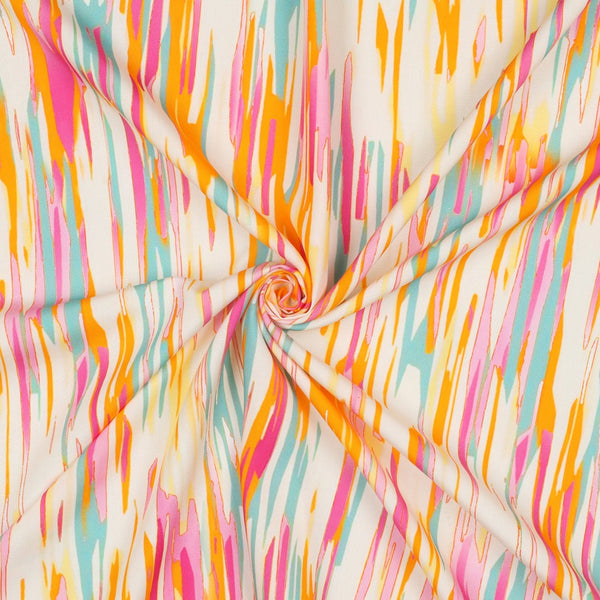 This soft viscose abstract print fabric is the perfect way to add a fun injection of colour to your handmade wardrobe. It would look great sewn up as a simple top like the Friday Pattern Company Donny shirt and paired with your favourite jeans, shorts or skirt. The Donny pattern is also available on our site.