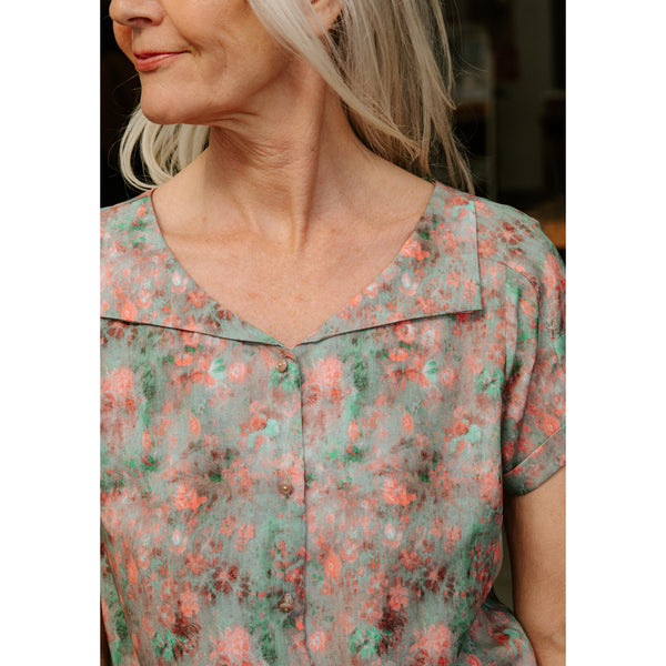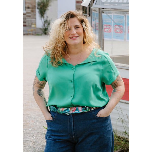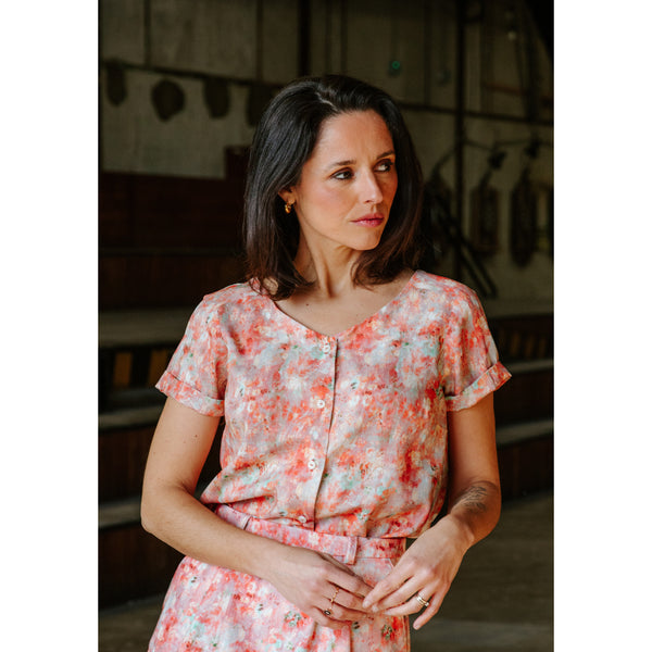 The little summer blouse that goes with everything‚ easy to sew and beautifully finished - this is it! The Almost sewing pattern takes inspiration from classic men’s shirts‚ with its cuffed sleeve hems‚ straight cut‚ and soft collar. But don’t be fooled: the volume‚ length‚ and shaping darts transform it into a truly charming blouse that will quickly become a staple in your handmade wardrobe. And if you’re after a more pared-back look‚ you can also sew a collarless version for a clean‚ modern finish.