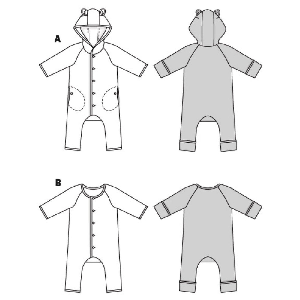 Cuddly jumpsuits for our little ones are so practical. You won’t want to do without them. The front can be completely unbuttoned which make these garments so easy to get in and out of. Fold over mittens and booties are the winning extra‚ however. They will keep little hands and feet nice and warm when needed.