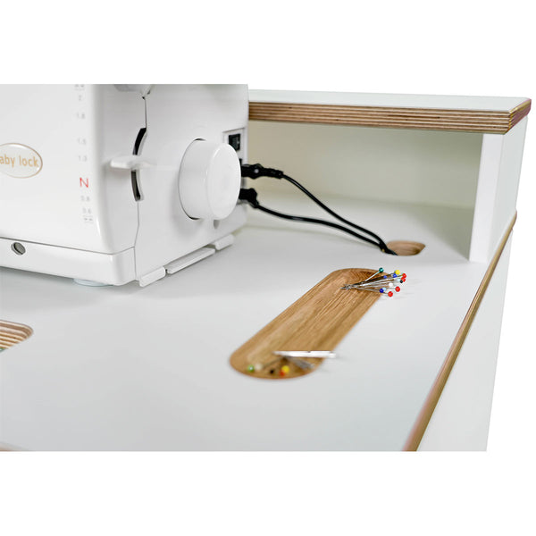 A sewing table is now available again for all large Baby Lock machines. Developed in Germany with high quality standards‚ a Scandinavian-style‚ modern design and loving attention to detail‚ the sewing table comes with numerous great elements. It turns your workplace into an oasis of well-being!