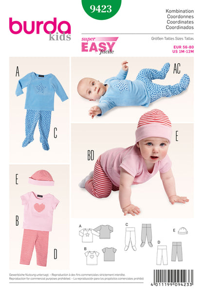 Baby Shirt‚ Trousers and Cap Burda Sewing Pattern No. 9423. Size 1 to 12m.