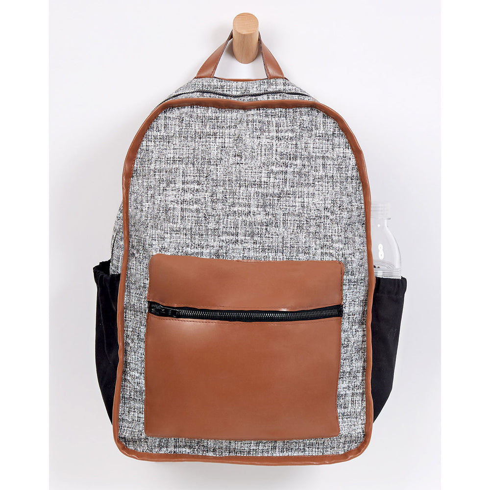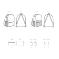 16 inches tall backpacks have double zip closure‚ faux leather binding‚ roomy water bottle pockets and can be made in fabric or clear vinyl. Cosmetic case‚ hand sanitizer and lip balm keychain holders included.