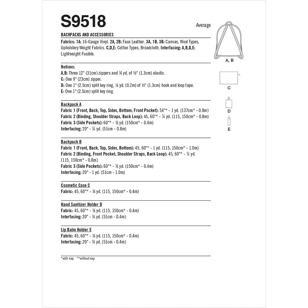 1A: 16-Gauge Vinyl. 2A‚ 2B: Faux Leather. 3A‚ 1B‚ 3B: Canvas‚ Wool Types‚ Upholstery Weight Fabrics. C‚ D‚ E: Cotton Types‚ Broadcloth. Interfacing: A‚ B‚ D‚ E: Lightweight Fusible.