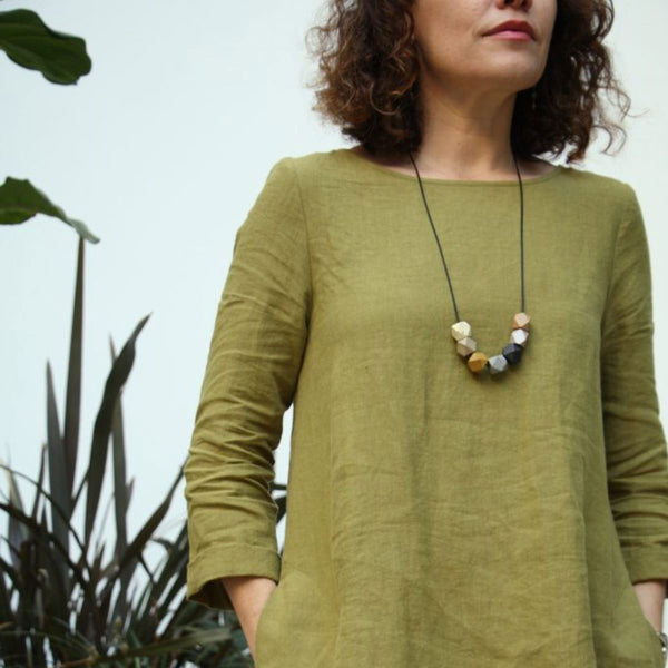 The Bella Dress is a flowy A-line dress featuring full length sleeves‚ optional pockets with stitching detail and a centre back seam. Bella is an easy‚ comfortable style and can be dressed up or down.