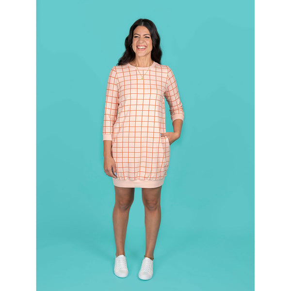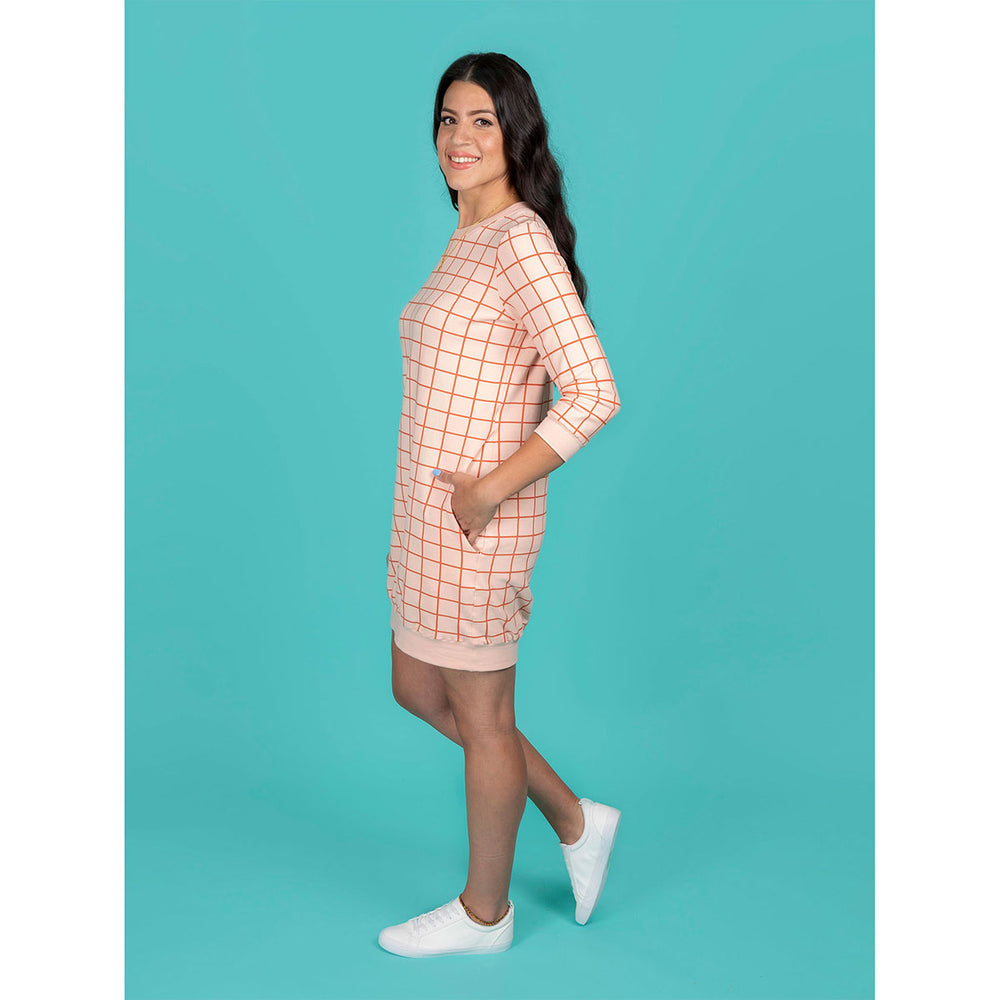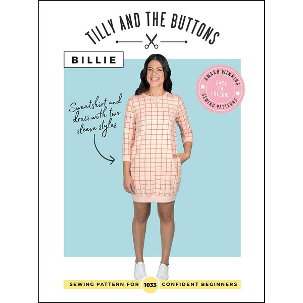 Cool‚ casual and modern‚ Billie is an ultra-comfy sweatshirt or sweater dress that you can whip up in an afternoon. It has a relaxed shape‚ crew neckline and classic trim details. Keep it effortless with cuffed‚ straight sleeves‚ or add some drama with on-trend balloon sleeves and deep cuffs. Choose between top length which sits on the high hip‚ or mini dress which finishes 10cm (4in) above the knee with gorgeous cutaway pockets. You can dress it up or down‚ whether you’re wearing Billie for a meeting‚ dinner date or Sunday on the sofa. Billie includes Tilly and the Buttons' award-winning beginner-friendly instructions‚ with colour photos showing you each step – making it easy for you to create gorgeous clothes you can be proud to say you made yourself.