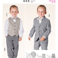 Dressed in a suit like dad. Jacket with lapels‚ flap pockets and small welt top left. Classic trousers with crease and slant pockets. Vest with lined back and bar tack for festive occasions.