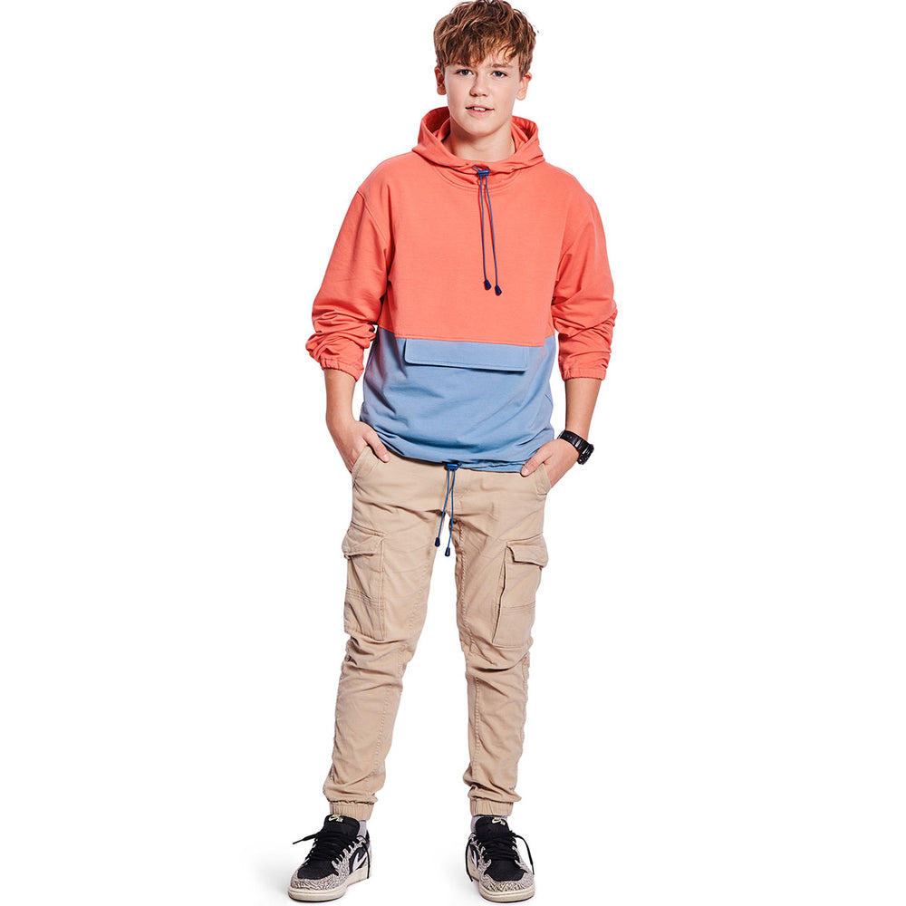 This Burda style sweater is no ordinary hoodie—it's a true style hit! Featuring trendy colour-blocking‚ a relaxed fit‚ and practical pocket flaps‚ it's a must-have for any wardrobe. The design‚ with a collar that transitions into a hood‚ is perfect for layering over a T-shirt and ideal for laid-back days.