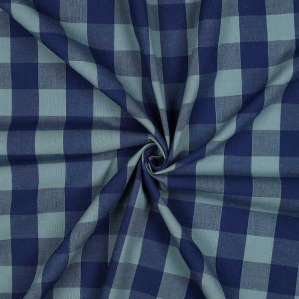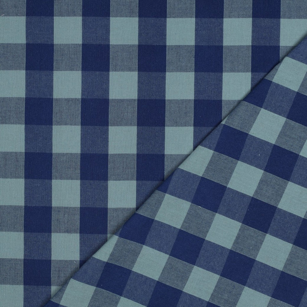 We love this vibrant and fun yarn dyed cotton check print fabric in classic blue hues. The individual threads are dyed before they are woven together to create the fabric making the colour last longer and the checks crisp and defined. It will hold structure well, but also has some movement and would sew up beautifully into shirts, trousers, shorts, tops, skirts, jumpsuits and dresses. A boxy, contemporary shirt pattern like the Noella blouse by Juliana Martejevs or a pretty sundress like the Claudia dress by Tessuti would work brilliantly. The Grand Bain shorts by Maison Fauve would also be a perfect match and you could even create a cute co-ord set with the Bonnie blouse by Style Arc. All patterns mentioned are also available on our site. This fabric has been Okeo Tex certified which means no harmful substances, such as chemicals, are present in the fabric.