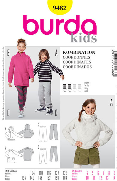 Childrens Unisex Casual Separates Burda Sewing Pattern No. 9482.