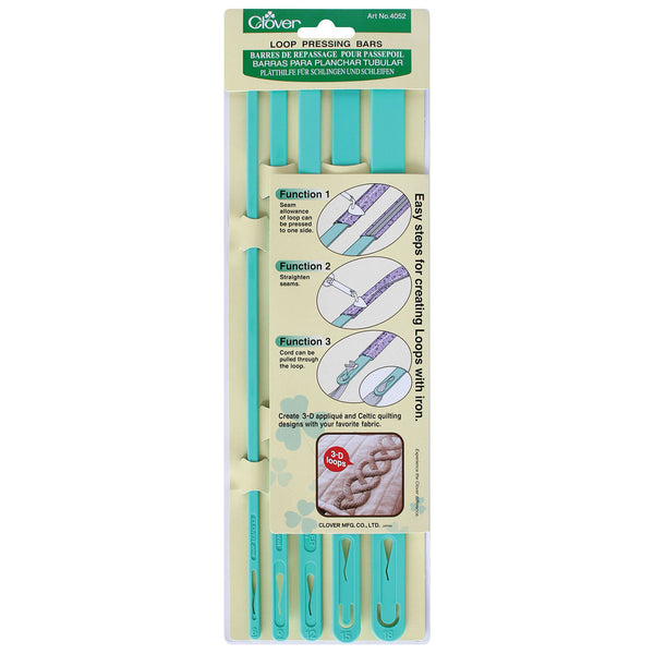 5 pieces per pack. You can enjoy making 3-D applique and Celtic quilting designs with your favourite loops. Quick and easy steps for pressing loops with iron. Available widths. 6‚ 9‚ 12‚ 15‚ 18 mm. Also useful for inserting cords.