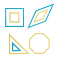 7 pieces per pack. Basic pattern templates set. Templates with openings showing both the seam line and cutting edge.