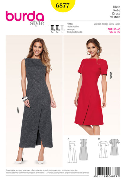 Dresses Burda Sewing Pattern No. 6877. Size 10-20.