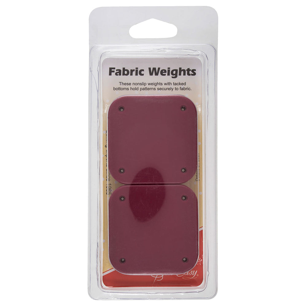 Fabric Weights - with 4 pins designed to firmly weight fabric in place for cutting‚ each weight is palm sized with small pins which pass cleanly through the fabric and into the cutting board beneath. In this way fabric can be held and straightened‚ and positioned more accurately with a ruler. Fabric weights take the pain out of placing‚ holding and cutting fine or slippery fabrics. Being small and square shaped they are easily stored away in the corner of a sewing basket or drawer.