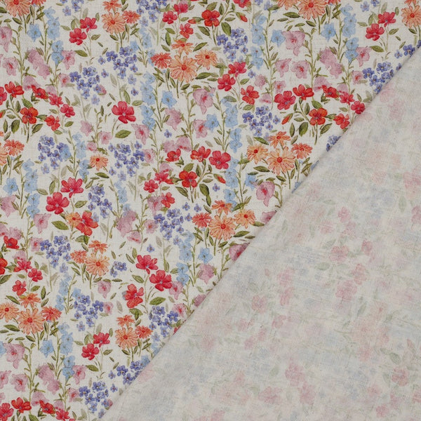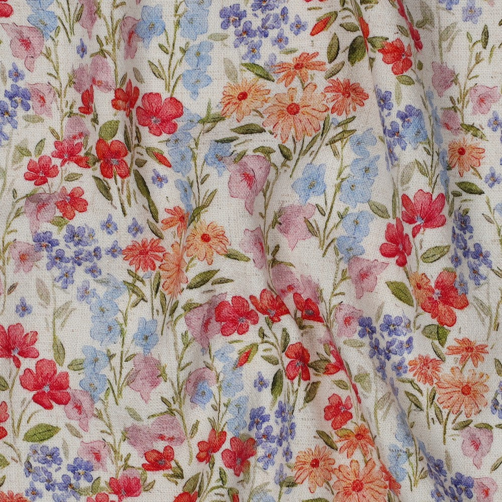 Floral Print Linen Viscose Crepe Woven Fabric in Off White.