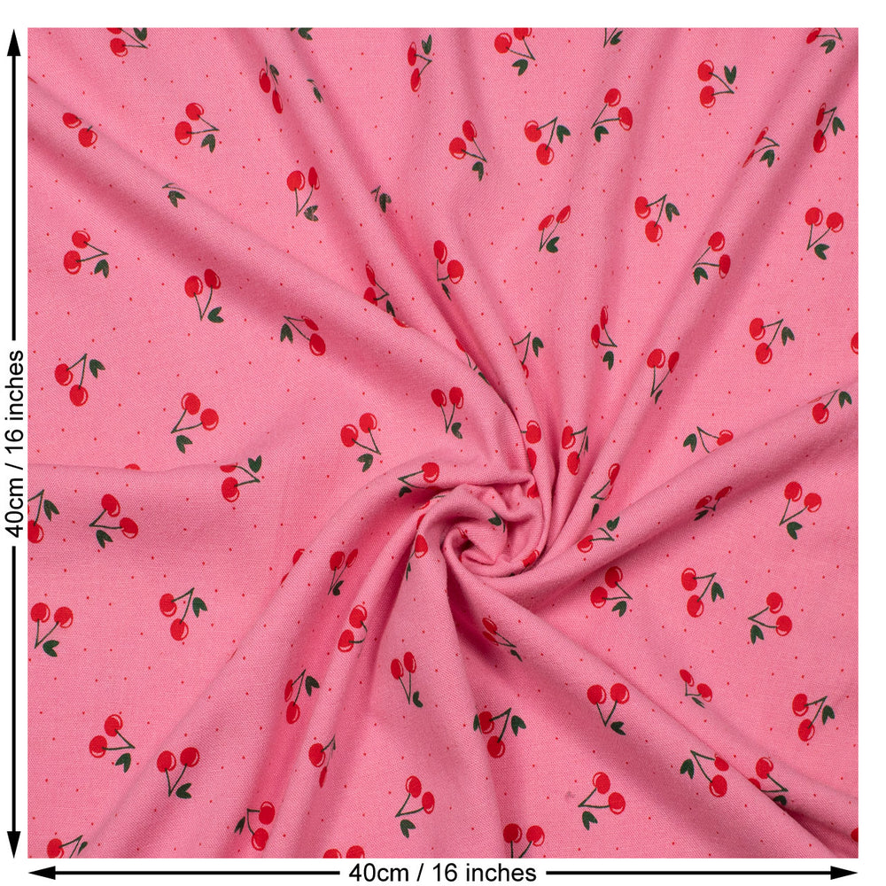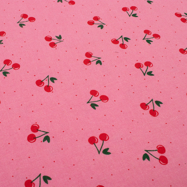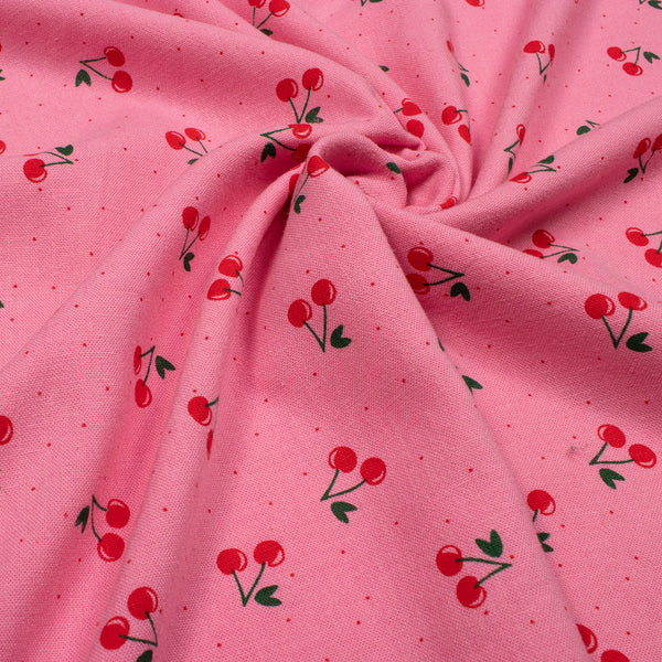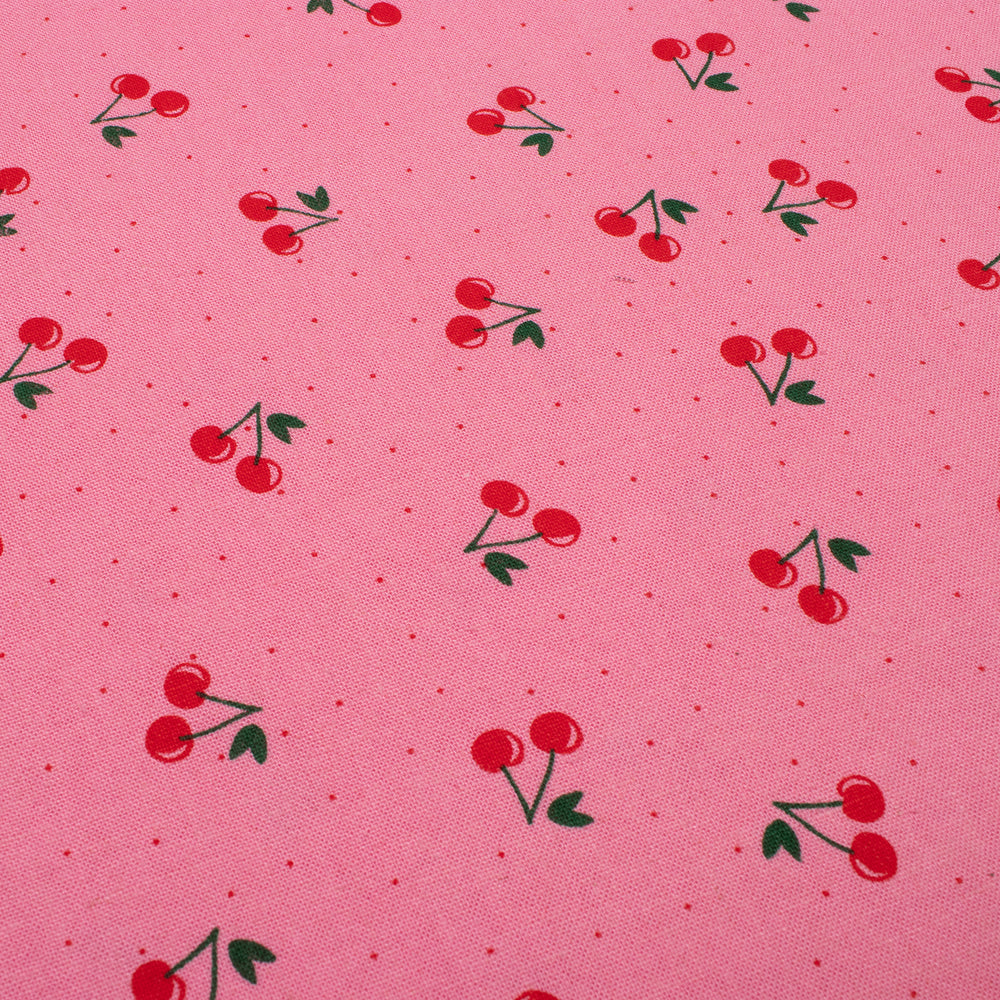 This playful cotton fabric features a sweet scattered cherry print in bright red with delicate green stems, set against a soft pink background with tiny dotted details. It has a fun, retro-inspired feel that’s perfect for adding a pop of personality to your handmade wardrobe. Made from 100% cotton, this deadstock fabric has a soft, twill-like texture with a lovely drape and movement. It’s a medium weight, giving it a reassuring feel without being heavy, making it both easy to sew and comfortable to wear. Perfect for dresses, skirts, shirts and lightweight trousers, this fabric is ideal for everyday pieces with a touch of charm. As a deadstock fabric, it’s also a more conscious choice, helping to make use of surplus materials that might otherwise go to waste.
