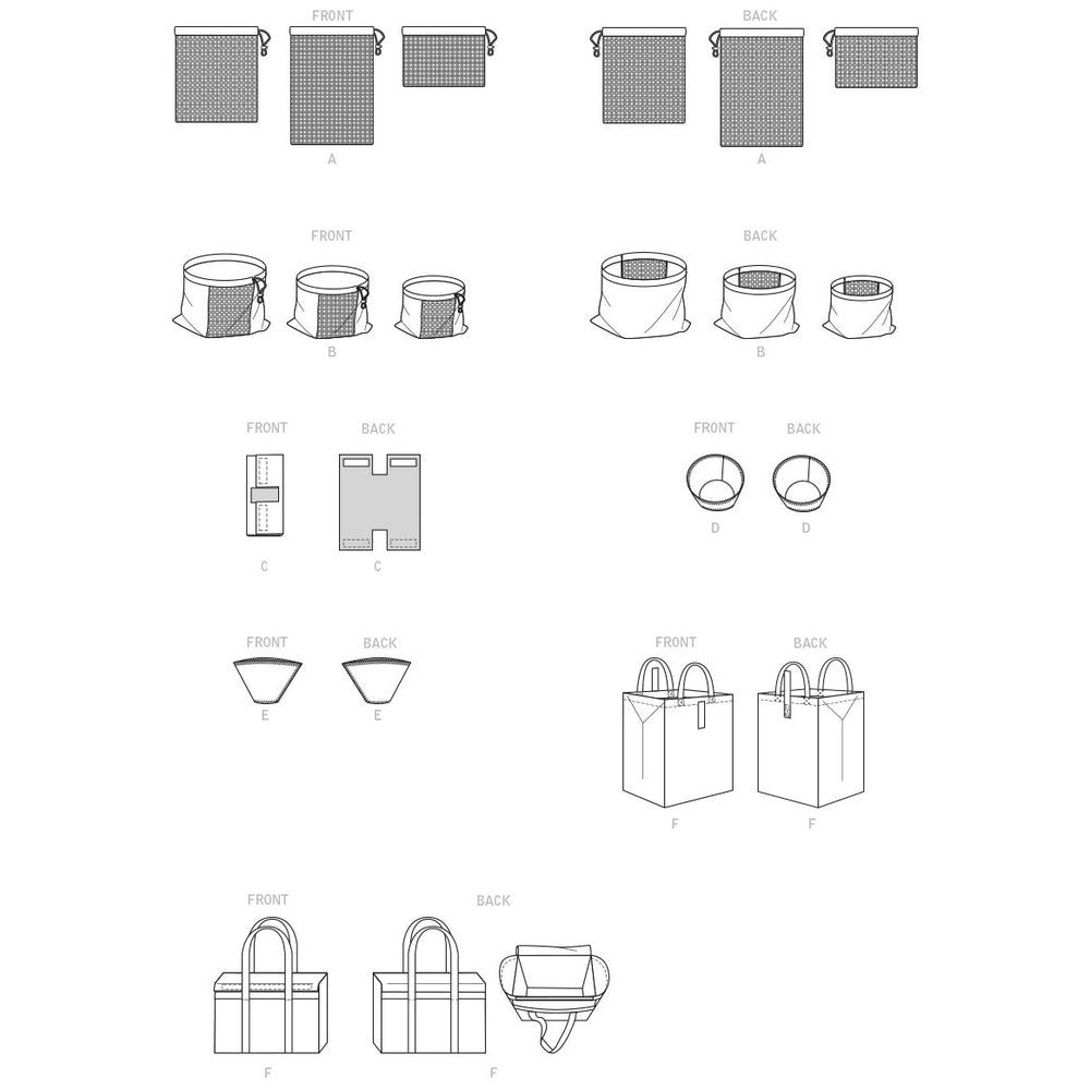 Contrast A‚ B: Mesh‚ Cotton / Cotton Blends. Also for B and D‚ E: Linen. C: Cotton - Terry Cloth. F‚ G: Canvas‚ Home Dec Fabric. Interfacing F‚ G: Fusible Knit Tricot.