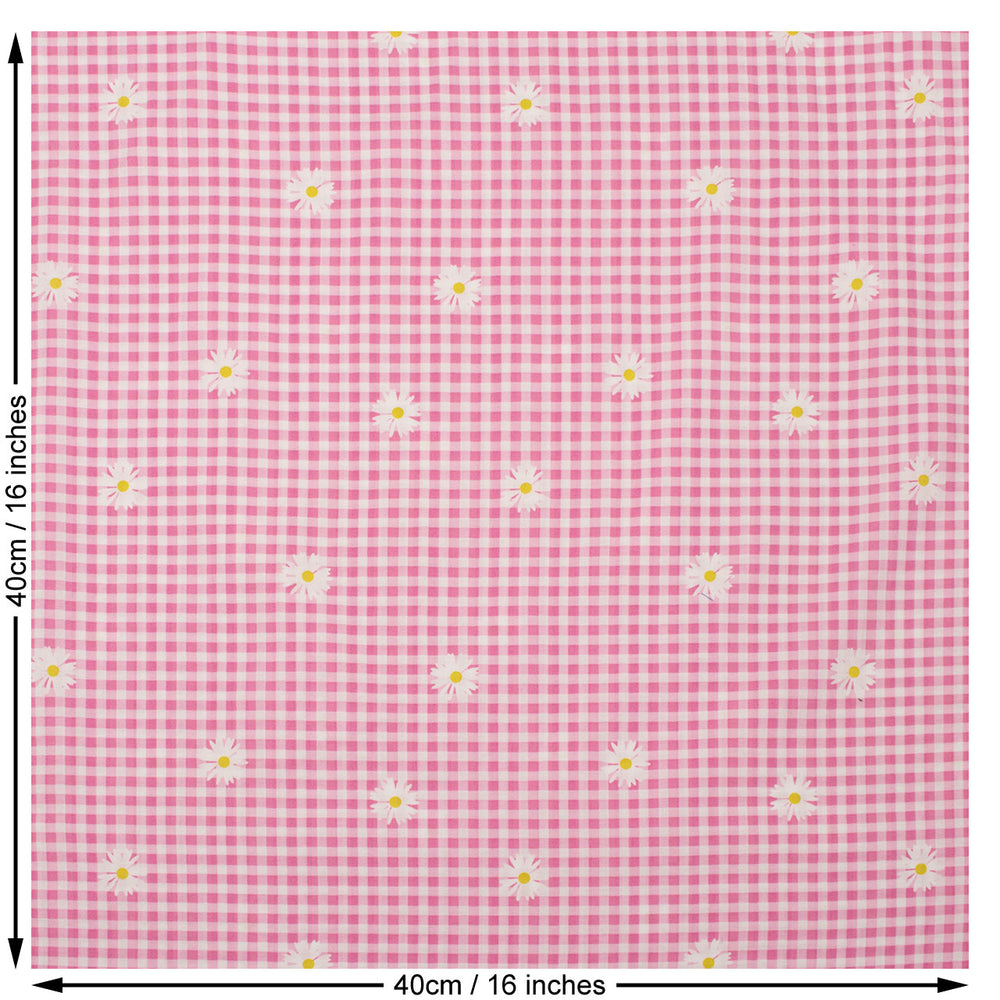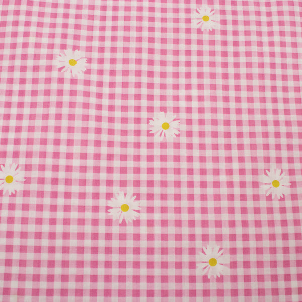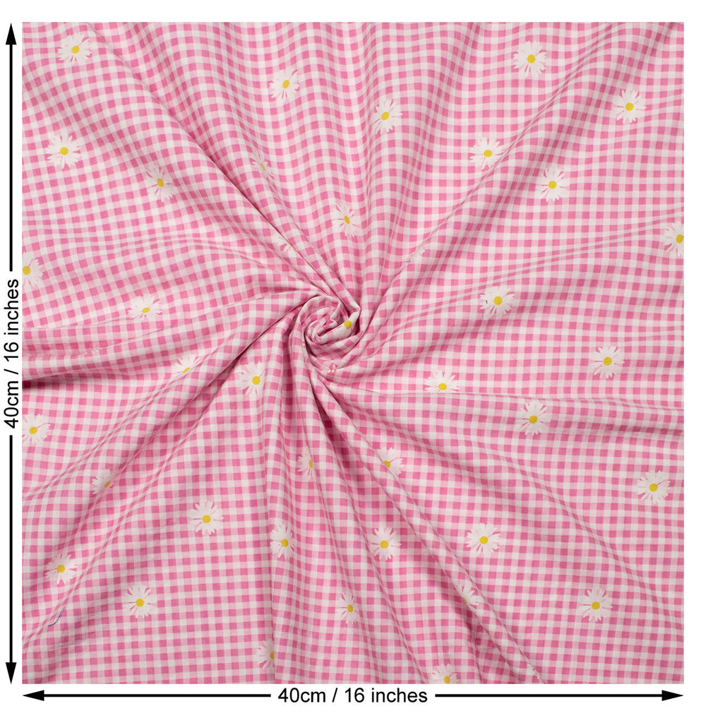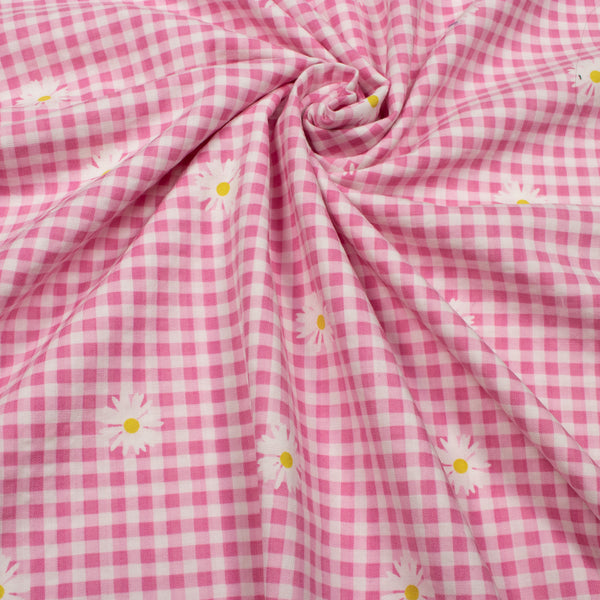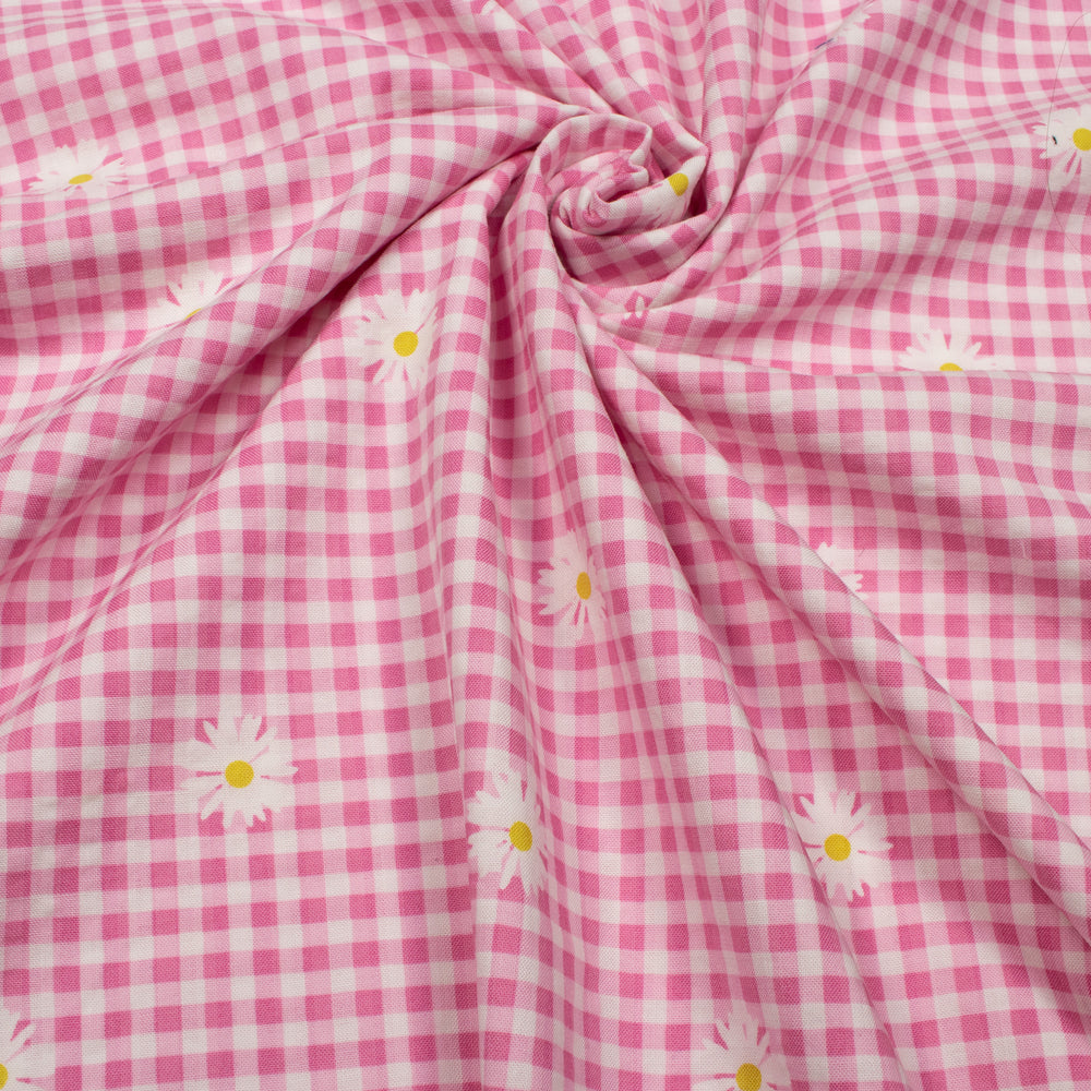 Gingham Print Viscose Woven Fabric in Pink.