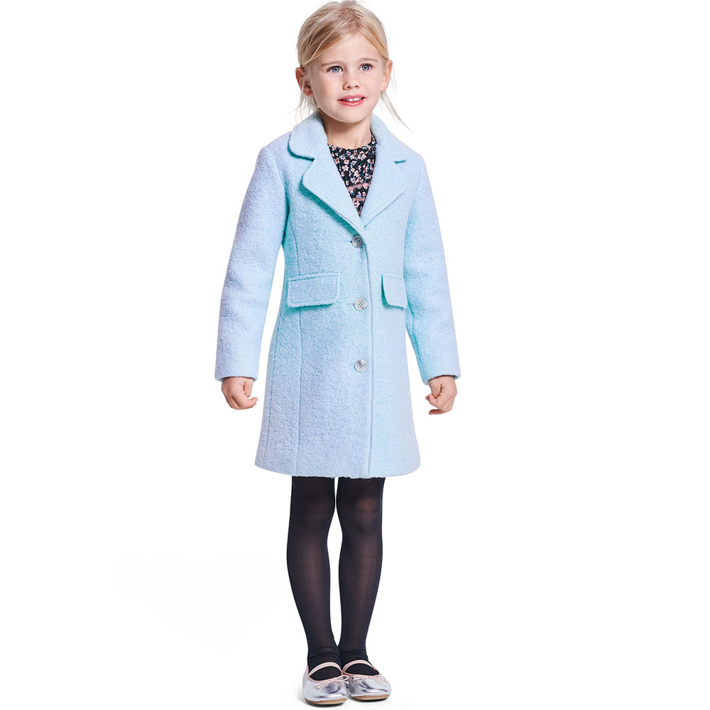 Perfect for little fashionistas! With our slim-fit children's coat made of bouclé‚ they can express their style from an early age. With classic details such as a lapel collar and flap pockets‚ this coat is a must-have for style-conscious girls. Our children's blazer is available to match the coat pattern‚ with a softer cut but just as chic with patch pockets. Ideal for light woolen fabrics‚ bouclé or jacquard. Mini-me fashion has never been so cute.
