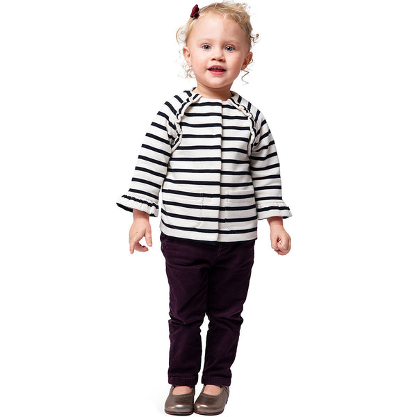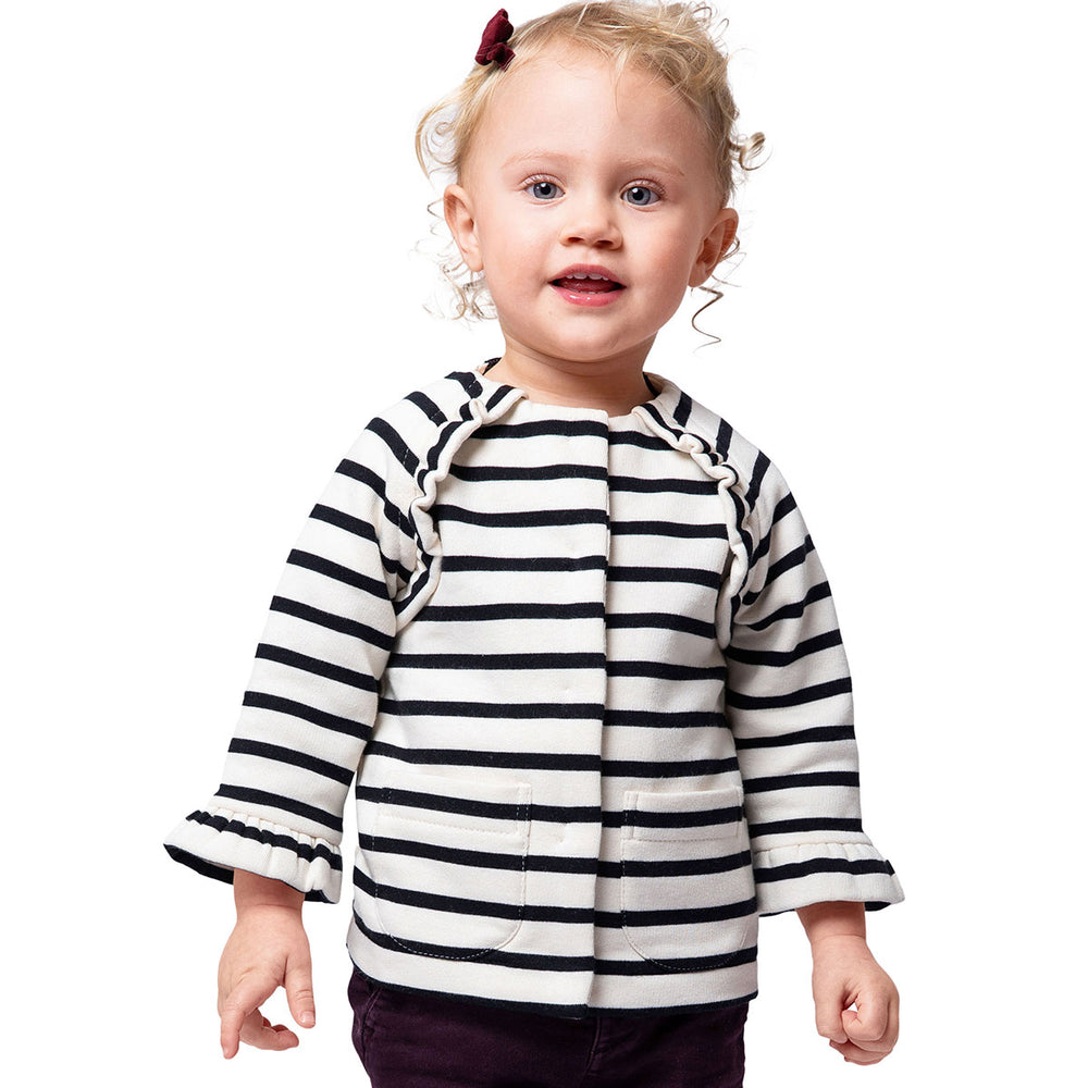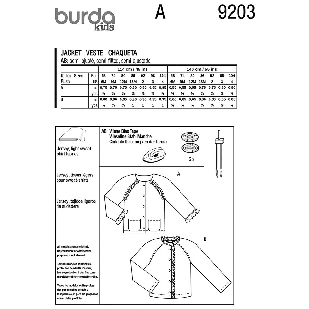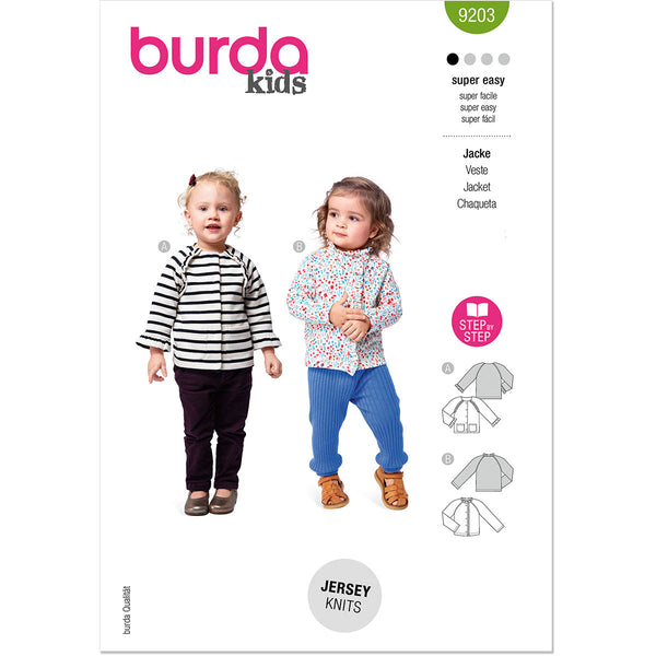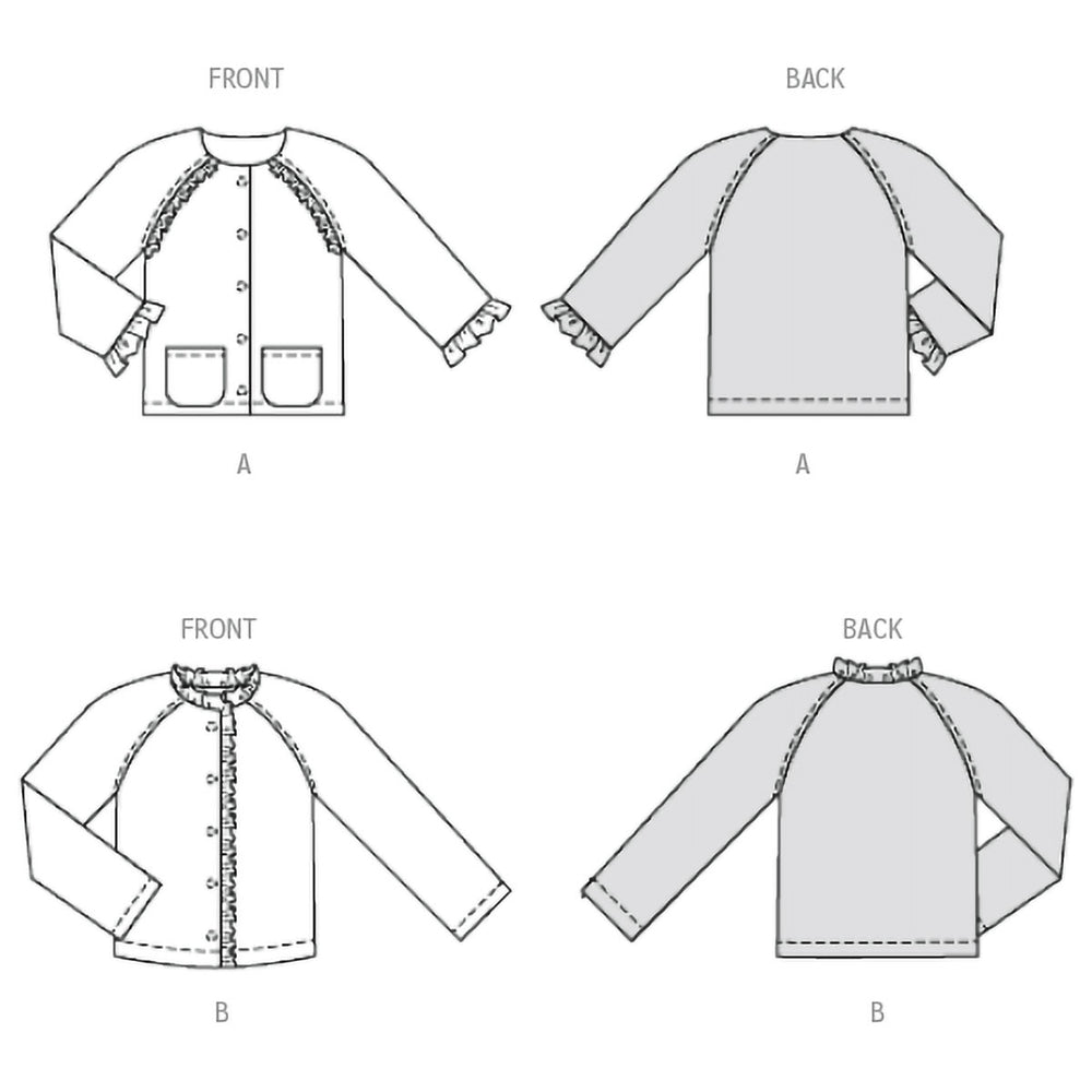 Discover these two cute patterns for children's jackets that are easy to sew! The first jacket features charming ruffles at the hems and raglan sleeves - a real eye-catcher that can also be repeated on the pockets. The second pattern variation is a comfortable sweat jacket with a ruffle around the neckline and the front edge. A great project for using fabric scraps creatively!