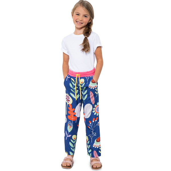 This pattern set is versatile and trendy! The model with floral print made of viscose and offset waistband fits both boys and girls. The elastic waistband with cord makes it easy to put on. The Hawaii-inspired shorts are the hit! This cut is perfect for summer events‚ can be combined with linen shirt and with two pockets for bits and pieces and hands. Sewed in no time at sewing level 2!