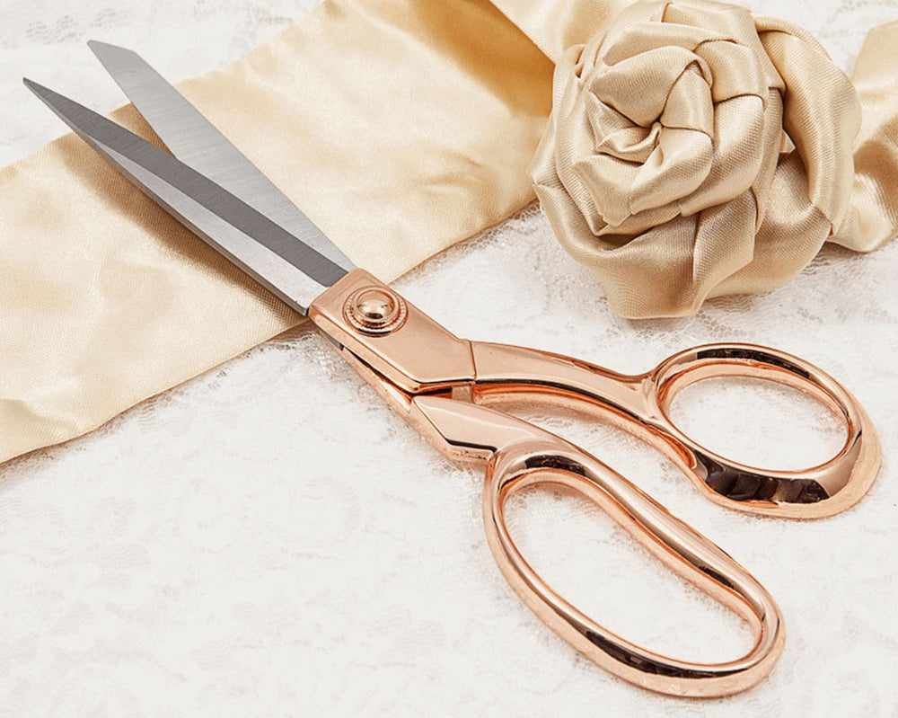 Hemline Dressmaking Scissors with Rose Gold Handles.