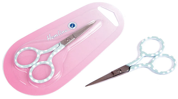 Hemline Polka Dot Embroidery Scissors. Blue. 9cm (3-1/2 inch)