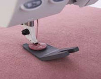The Clearance Plate creates a thread shank when sewing buttons in place. Each end is a different thickness for more or less thread shank. It also can be used when sewing over heavy seams to balance the height of the foot.