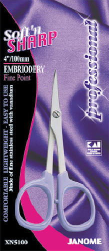Janome 4 inch Fine Point Soft N Sharp Embroidery Scissors.