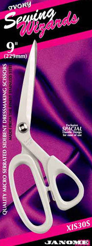 Janome Ivory Sewing Wizards‚ Side Bent Serrated Dressmaking Scissors.