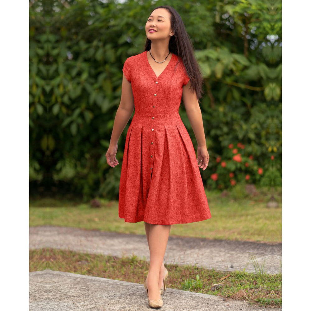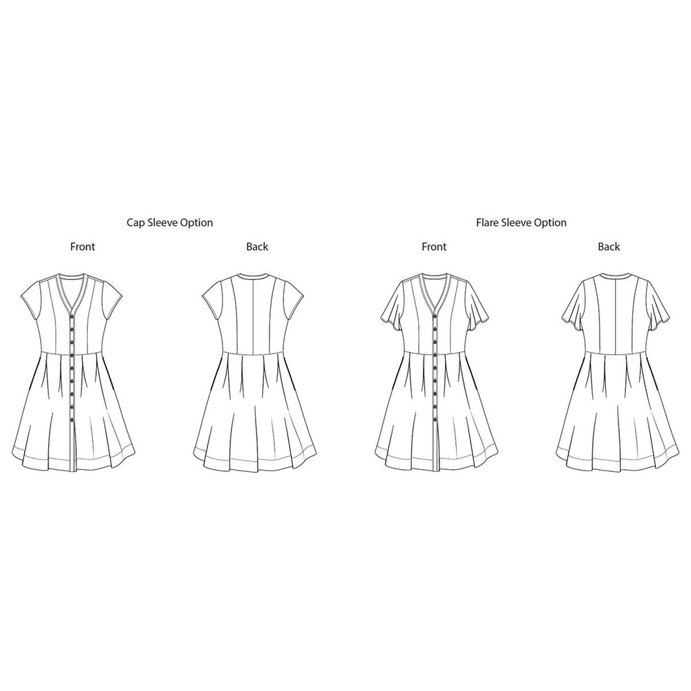 With a touch of vintage and a touch of modern‚ the Kalispell Dress makes you feel like a goddess any way you view it. Designed with front and back princess seams in the bodice and a full skirt with inverted box pleats‚ this fit-and-flare dress is flattering to many body types and sizes. You can choose to keep it at midi length‚ or lengthen or shorten the skirt using instructions included for a different look.