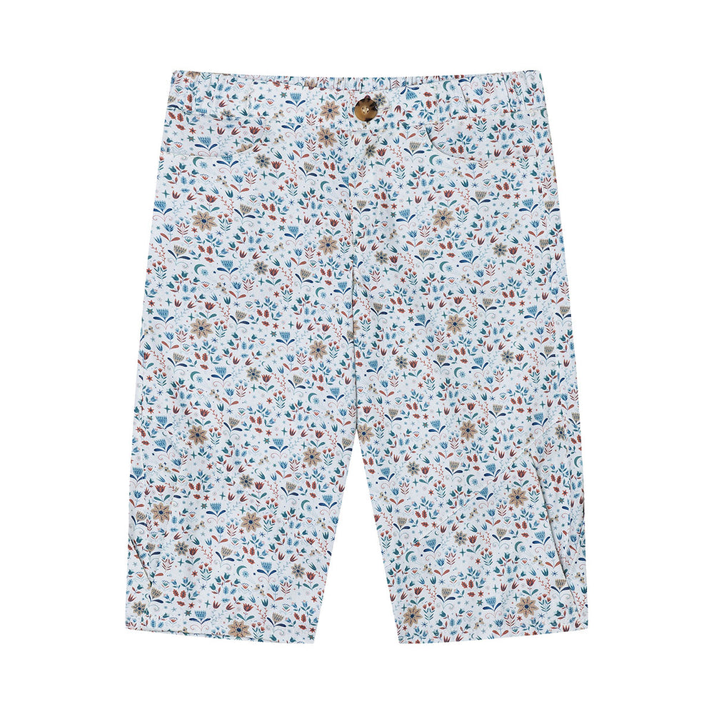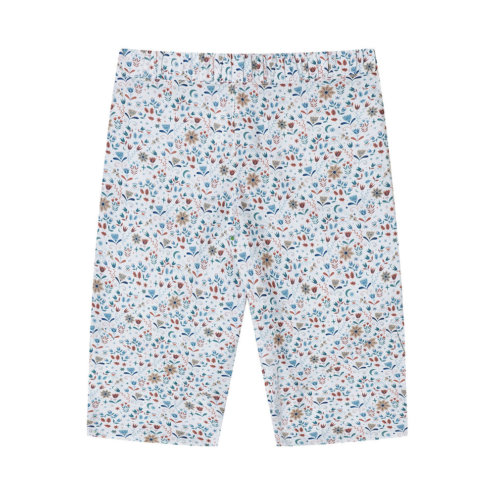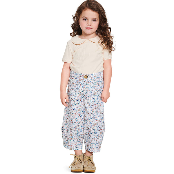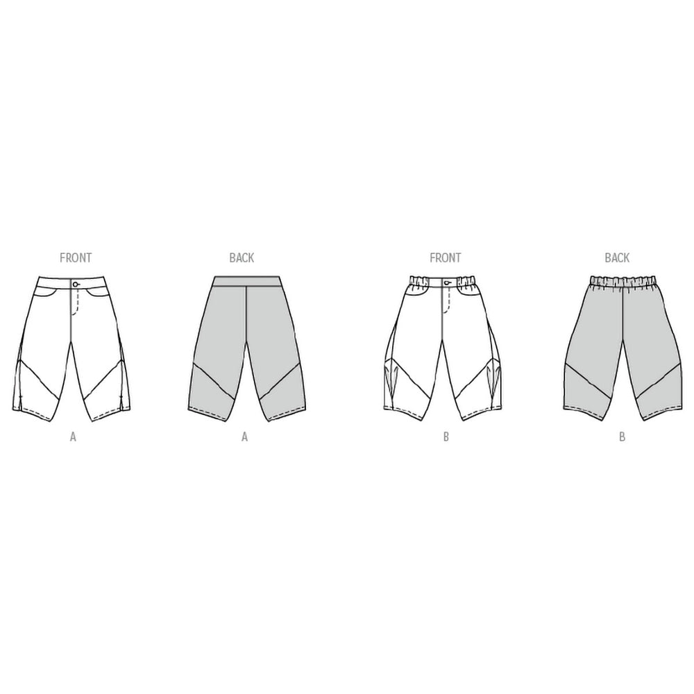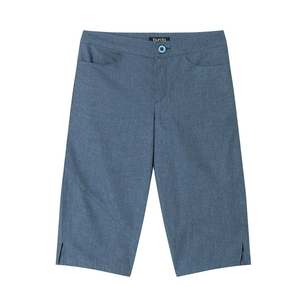 Discover our patterns for children's bloomers! The first pattern version impresses with plenty of freedom of movement and cool details such as sweeping dividing seams‚ side slits and pockets. The cardigan look with V-neck and press studs adds a sporty twist. The second cut features a comfy elasticated waistband and a cute floral print - perfect for little explorers! Ideal for experienced sewers.