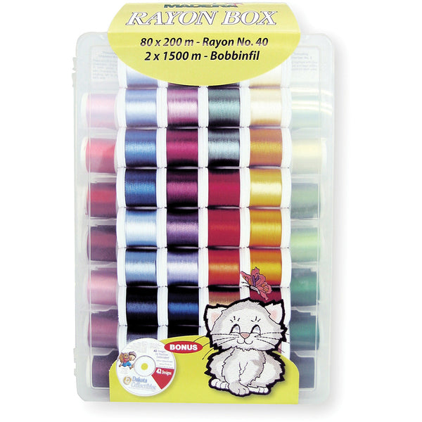 Madeira Rayon Embroidery Thread in Threadable Travel Box. 80 reels x 200m