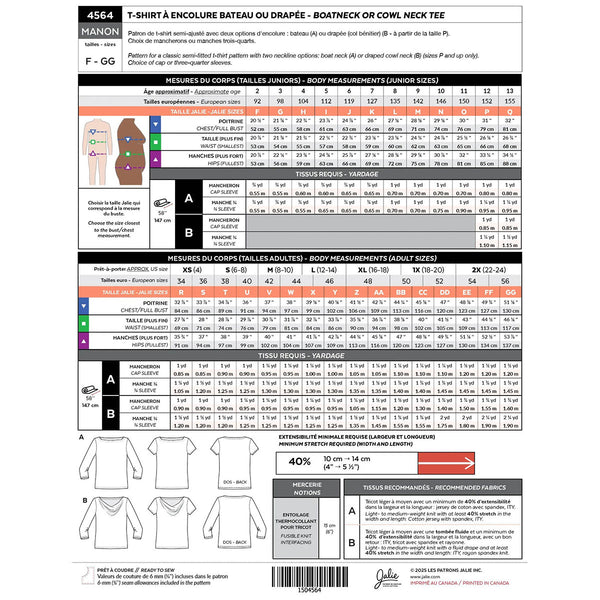 Manon Boat Neck Tops Pattern Jalie Sewing Pattern 4563.
