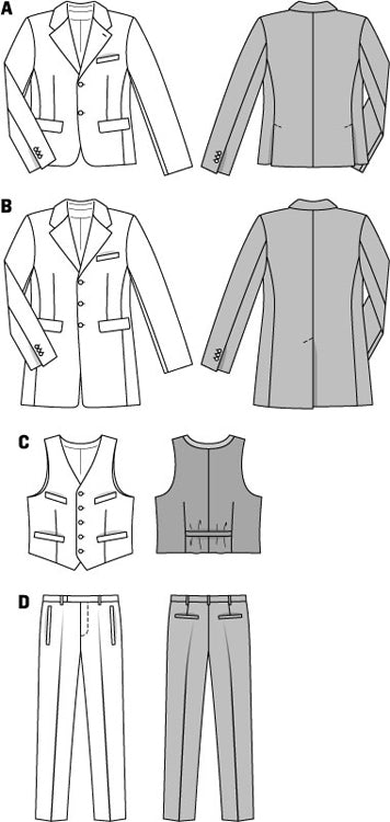 Mens Single Breasted Suit and Waist Coat Burda Pattern No. 6871. Size 34-50.