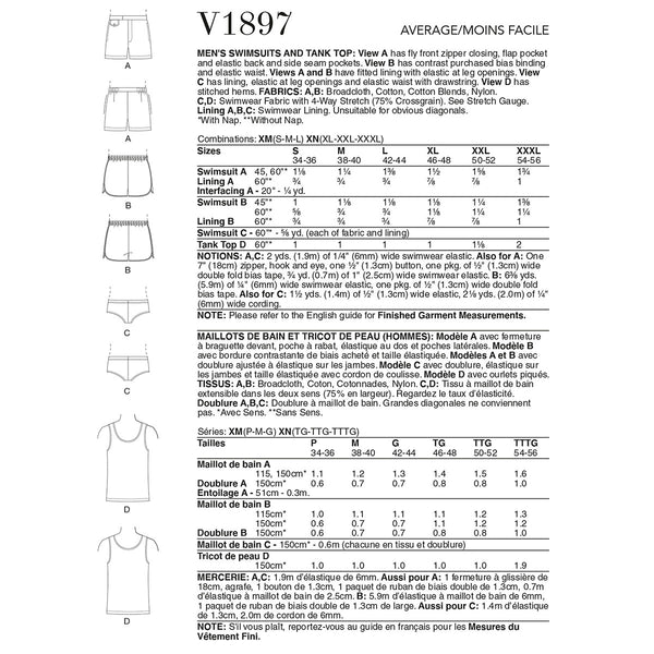 A‚ B: Broadcloth‚ Cotton‚ Cotton Blends‚ Nylon. C‚ D: Swimwear Fabric with 4-way Stretch (75% Crossgrain). See Stretch Gauge. Lining A‚ B‚ C: Swimwear Lining.