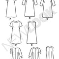 Misses knee length shift dress has wide round neckline with or without bias-cut stand collar and can be made sleeveless or with 3/4‚ short or pleated sleeves.