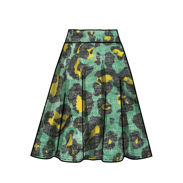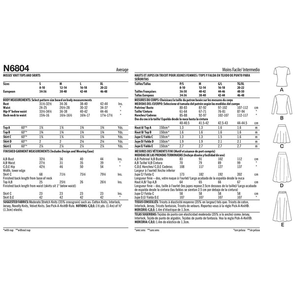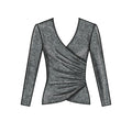 Close-fitting‚ pullover tops have wrap front with left side gathers‚ sleeve variations and narrow hems. Skirts (below waist) have elasticised waist‚ self-lined yoke variations and narrow hem. View D has high-low hem‚ wrong side shows. View E has gathered yoke.