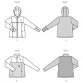 These sporty shirts offer two easy-to-sew patterns. The first shirt features a hood that transitions into a stand-up collar‚ with slim cuffs and thumb holes‚ perfect for windy‚ rainy weather. The second variation provides excellent temperature regulation and freedom of movement in a trendy colour-block design‚ with added seam pockets for extra convenience. A must-have for active wear!