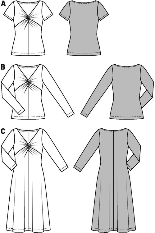 Sophisticated‚ entwined front parts give both the shirt and the dress a special look. The bi-elastic jersey provides shape retention and a perfect fit. The dress has got a flared skirt with nicely draped panels.