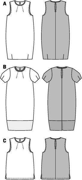 Light summer outfits. Tiny little neck folds provide wearing ease. Short variant A with small‚ gathering hem darts. The broad hem band of the longer variant B with small sleeves provides shape retention.