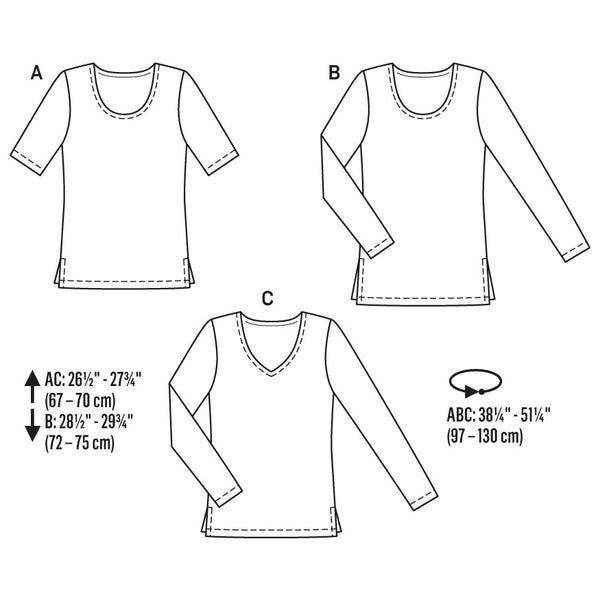 The round or V-neckline casual tops made of a jersey fabric. Not too short and not too tight‚ perfect for all seasons.