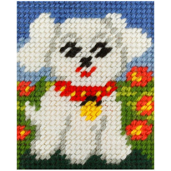 My First Embroidery needle point kit‚ worked in half stitch on Zweigart canvas. Kit contains acrylic yarns‚ needle and instructions. 16.5 x 16.5cm.