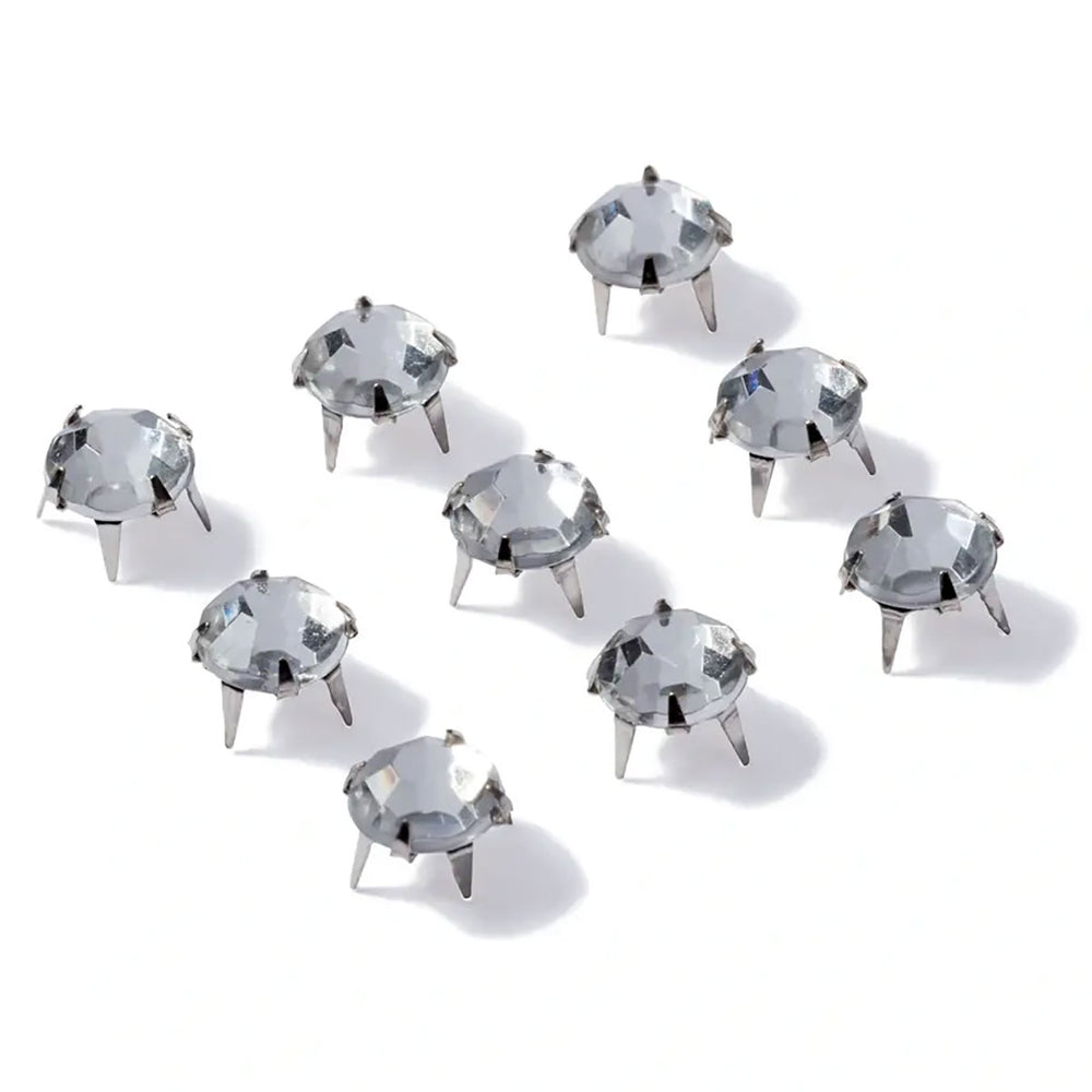 These stylish accessories‚ consisting of a hexagonal sanded rhinestone and a discrete metal frame‚ are the perfect accessories for decorating clothing‚ bags and much more. Four nail-shaped feet can be easily inserted through robust fabric or leather. The feet are bent towards the inside on the rear and provide firm support.