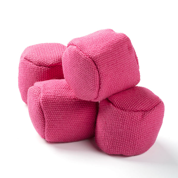 A set of 4 small cloth covered bags with flat base filled with metal balls. Used to place sewing patterns on fabric without the use of pins‚ thereby enabling accurate cutting.
