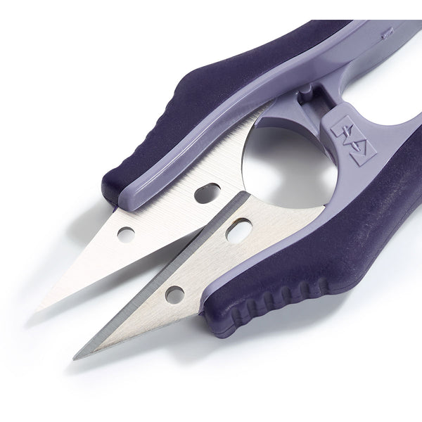 These 12 cm Thread Snips are lightweight and sit comfortably in the hand. The ergonomic design and the soft material of the handle also guarantee high slip protection when working. A practical cutting tool‚ which can always be stored safely as it comes with a safety end cap. Manufactured by KAI of Japan these are some of the finest scissors available.
